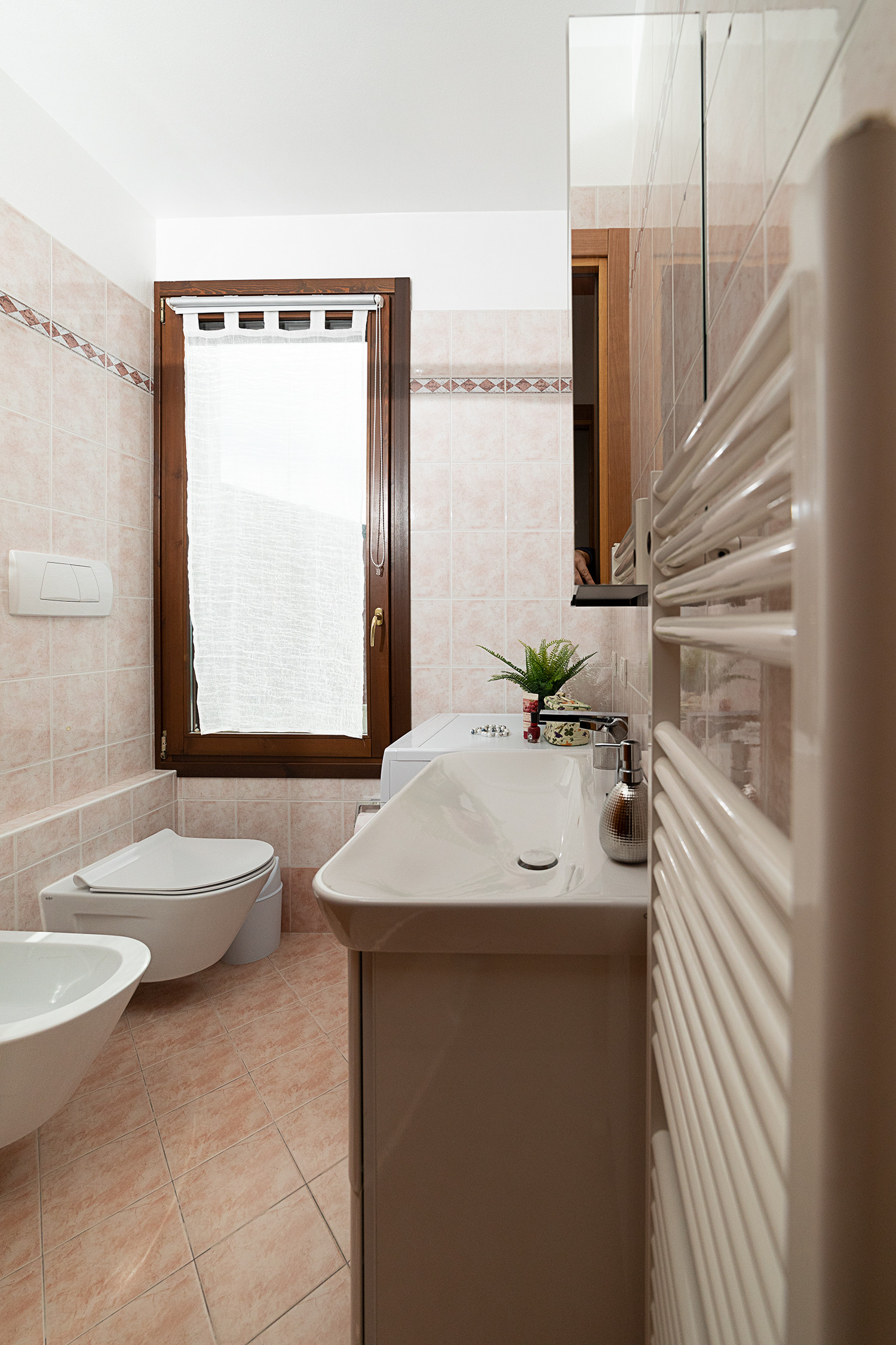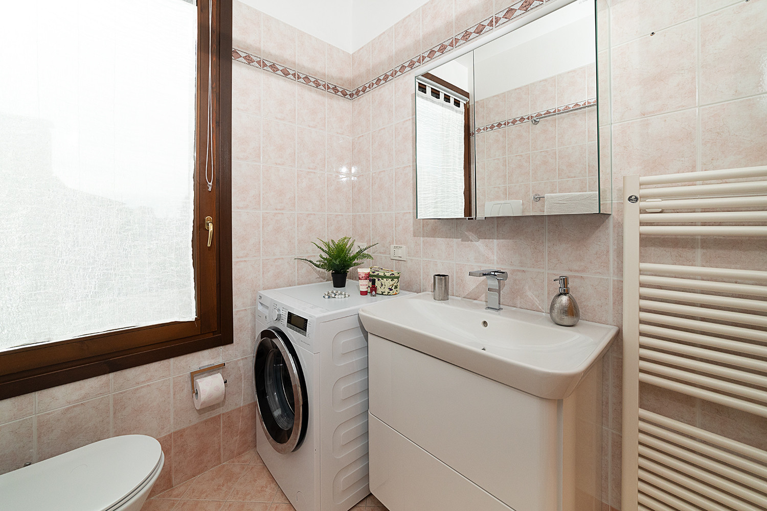 Bathroom with washing machine and shower. The spacious terrace with wonderful lake view will welcome you for dinners at sunset and outdoor lunches thanks to the presence of a comfortable awning. The apartment complex has a lovely swimming pool (guaranteed opening period 15/05-30/09) and a garden for common use. We recommend this property to quiet guestslooking for a well-kept context. Public parking near the property. Animals are not allowed.