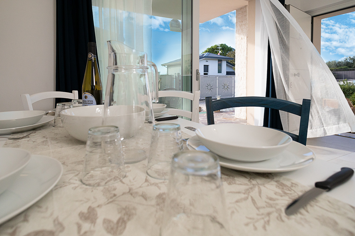 The comfortable Iris apartment of about 65sqm is located on the ground floor of a quiet residential complex and offers a private garden on three sides equipped with a sun shade, table and chairs where you can relax on warm summer days or after a trip to the characteristic villages of Lake Garda.