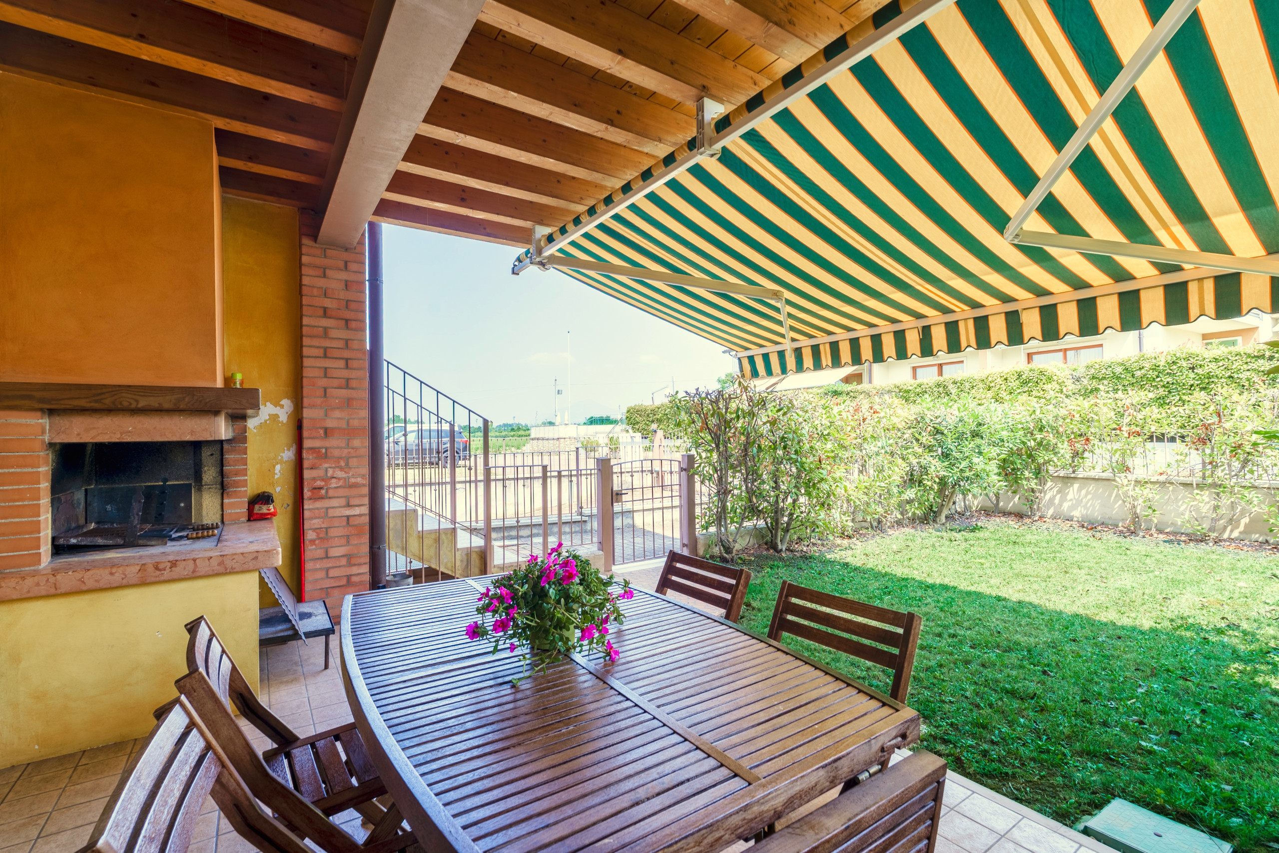 Spacious three-room apartment of approximately 65 square metres, located in Lazise, about 1500 metres from the historic centre and beach, in the Miralago residential complex, with swimming pool and large sunbathing area (open from 15/05 to 30/09). Public parking is available for guests. The ground floor apartment can accommodate 4 to 6 people and consists of a living room with a fully equipped kitchen including refrigerator, gas hob, oven, American coffee machine and toaster, and a double sofa bed. The living room overlooks a beautiful enclosed garden suitable for safely hosting your four-legged friend. Large private terrace equipped with sun shade, table and chairs for pleasant outdoor meals. Windowed bathroom with washing machine and shower box, master bedroom with large wardrobe and a room with bunk bed. Air conditioning, satellite TV and WiFi available for guests. Pets are allowed upon request. Smoking is not permitted inside the accommodation. We have a second apartment on the first floor with lake view.