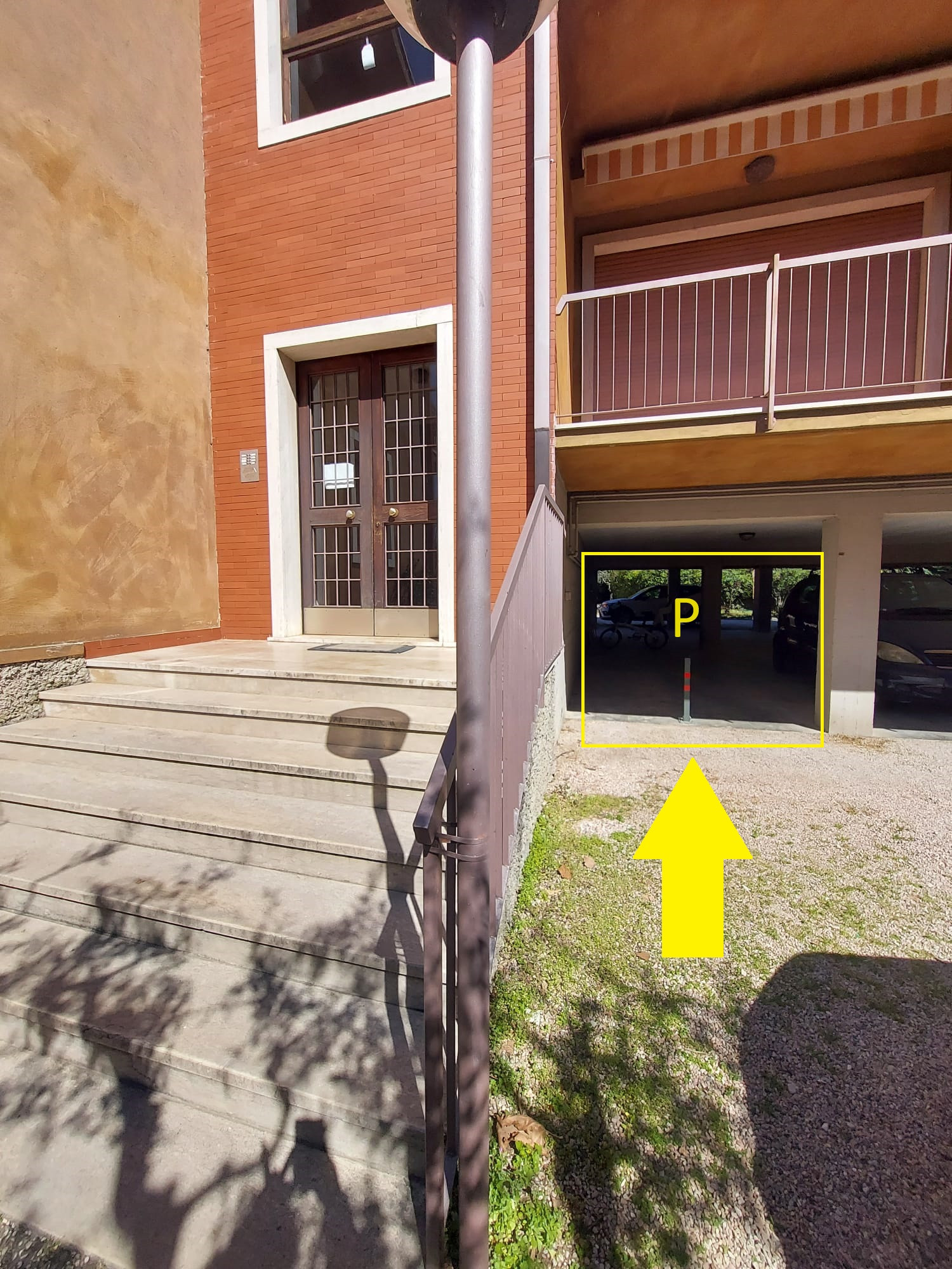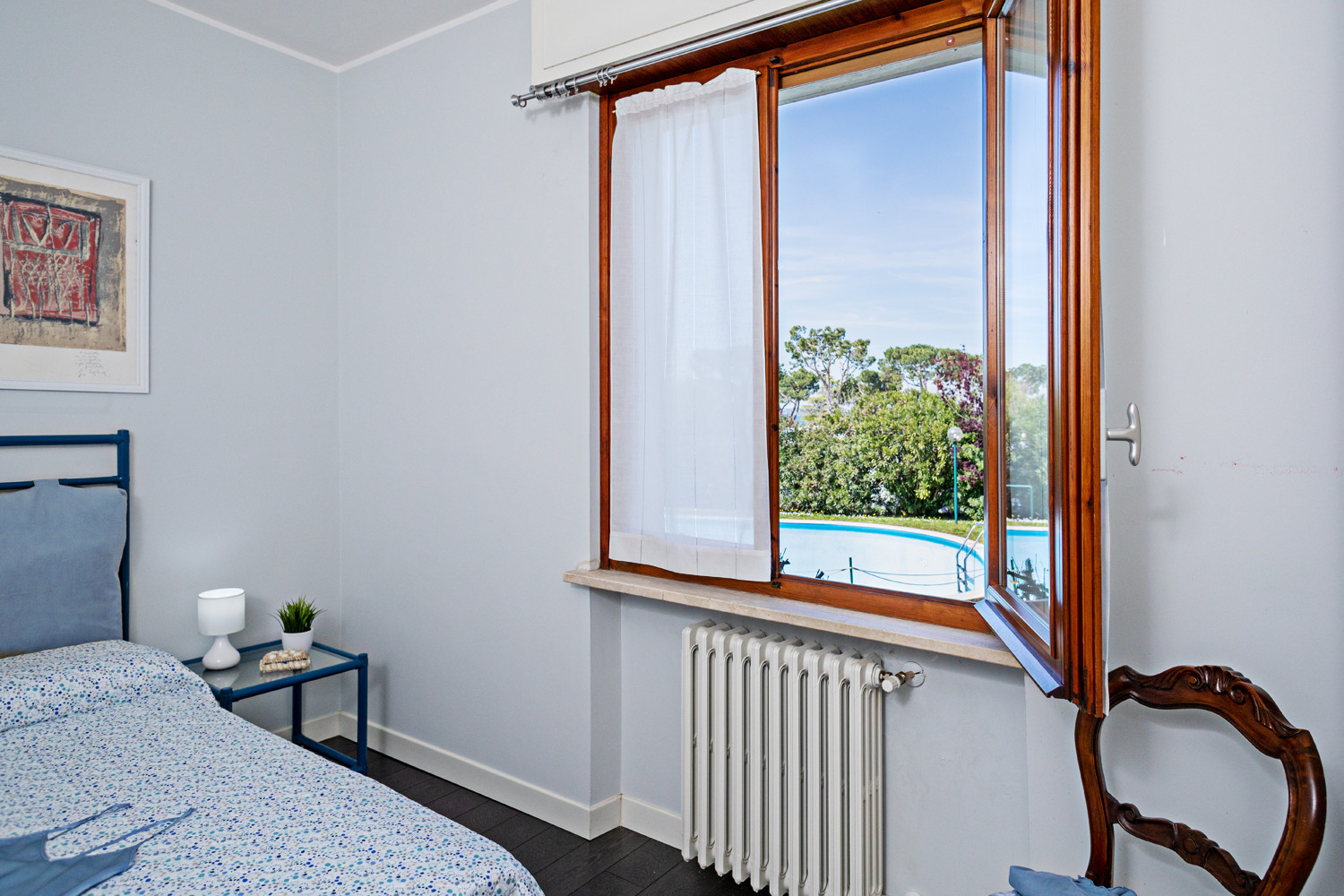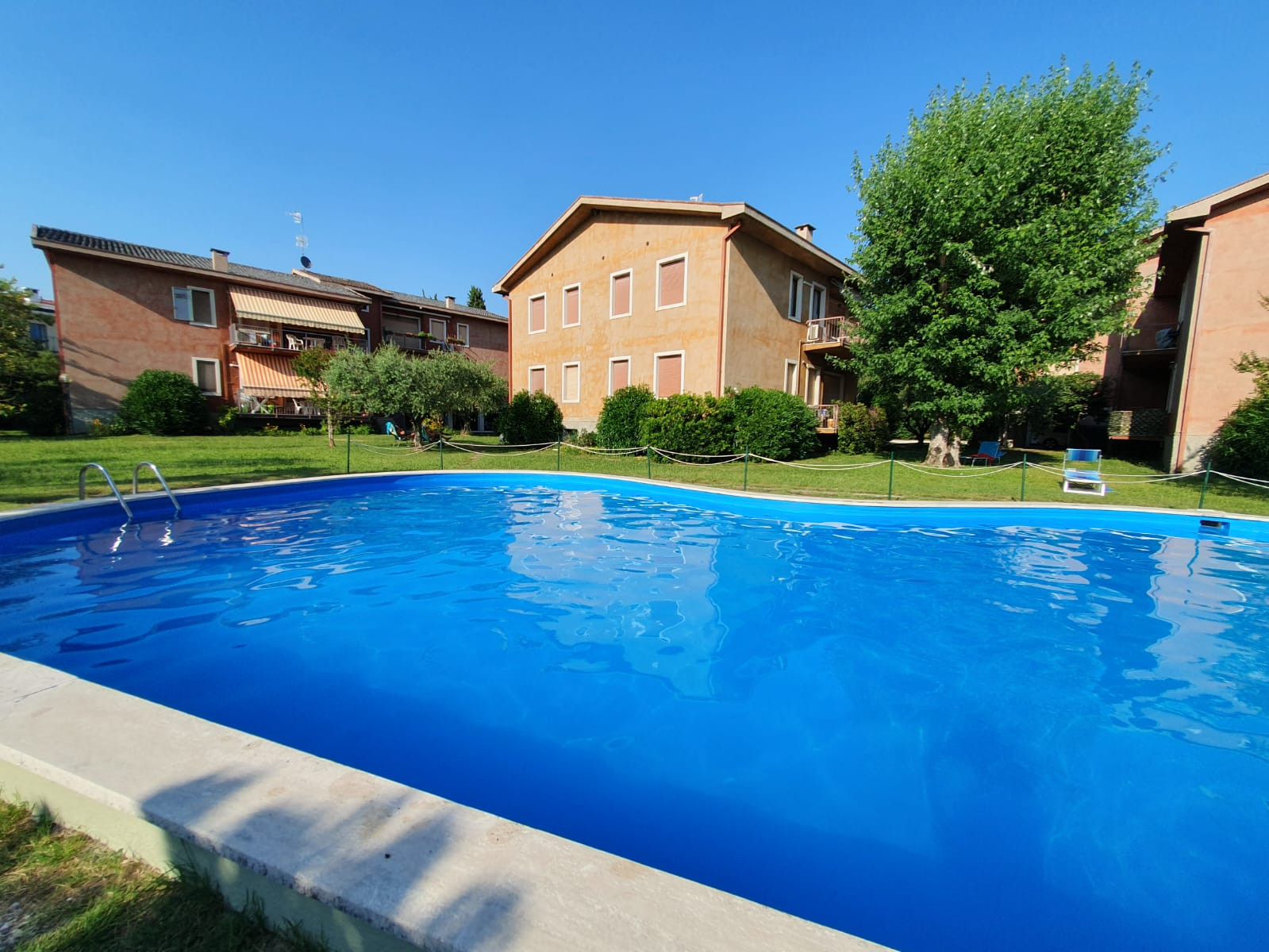 The apartment consists of a bright living area with a kitchenette with gas hob, refrigerator and freezer, dishwasher, electric/microwave oven, kettle, toaster and coffee machine. Wooden table in country chic style suitable for hosting up to 6 people. A comfortable double sofa bed (recommended for one adult or two children) and a reading armchair complete the living room. Air conditioning, satellite TV and wifi available for guests. Double bedroom with wardrobe, small bedroom with bunk bed and wardrobe. Windowed bathroom with shower cabin and convenient washing machine. A covered parking space within the complex available, access manoeuvre with limited space (width 235 cm, height 200 cm, depth 600 cm). Cellar where bicycles can be parked safely, sun loungers available for guests for use in the pool (swimming cap mandatory - pool use guaranteed 15/06-15/09 - open only during lifeguard hours 11.00/13.00 and 15.30/19.30). Pets not allowed, non-smoking apartment.