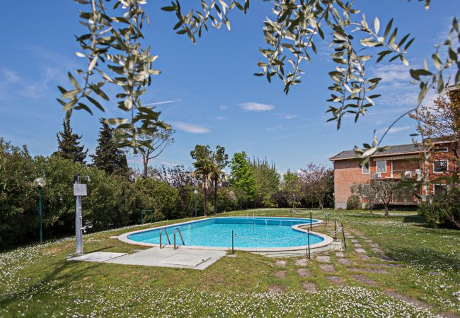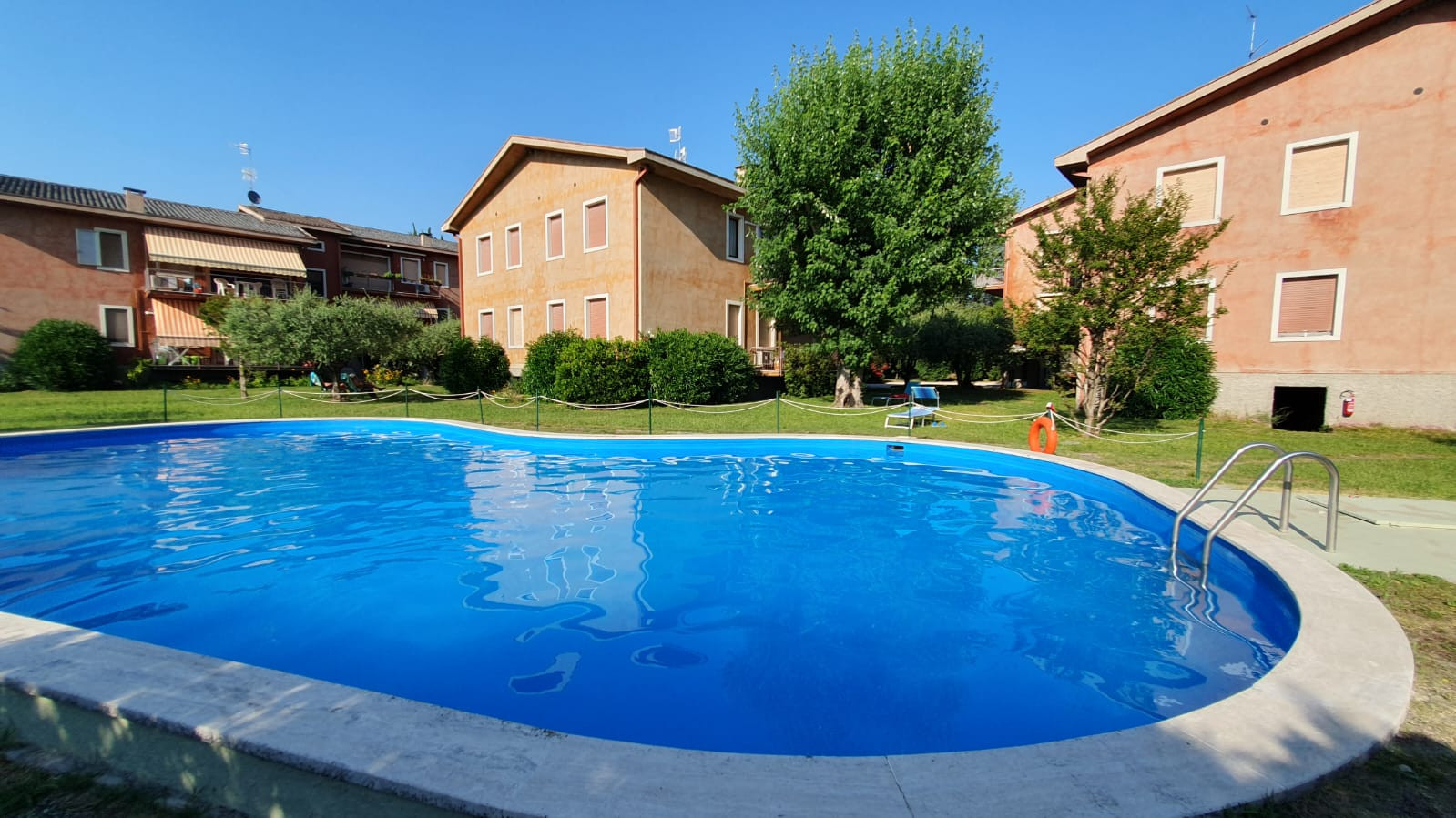 Spacious three-room apartment of approximately 65 square metres, located in Lazise, about 1500 metres from the historic centre and beach, in the Miralago residential complex, with swimming pool and large sunbathing area (open from 15/05 to 30/09). Public parking is available for guests. The ground floor apartment can accommodate 4 to 6 people and consists of a living room with a fully equipped kitchen including refrigerator, gas hob, oven, American coffee machine and toaster, and a double sofa bed. The living room overlooks a beautiful enclosed garden suitable for safely hosting your four-legged friend. Large private terrace equipped with sun shade, table and chairs for pleasant outdoor meals. Windowed bathroom with washing machine and shower box, master bedroom with large wardrobe and a room with bunk bed. Air conditioning, satellite TV and WiFi available for guests. Pets are allowed upon request. Smoking is not permitted inside the accommodation. We have a second apartment on the first floor with lake view.