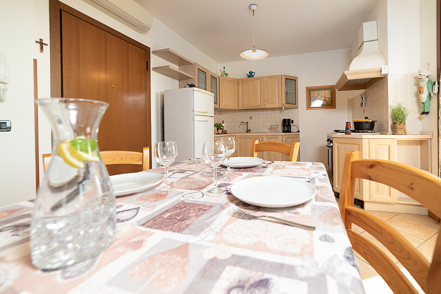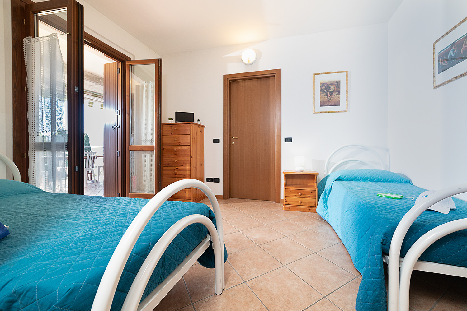 Big three-room apartment composed by living room completely equipped for 7 people with fridge, stove, backing oven, microwave oven, dishwasher, coffee machine, toaster. Comfortable double sofa-bed, Tv Sat, airco. Big bedroom with a double bed and a single bed, two windows, big wardrobe and airco. Second bedroom with two single beds, terrace, airco and private bathroom with shower box and WC, window. Second bathroom with shower box, WC, washing machine, window. No Smoking apartment. Pets on request.