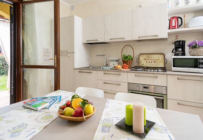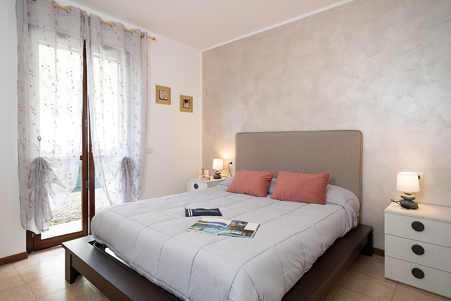 Charming two-room apartment located in the Gardenia residential complex in Lazise, about 1.2 km from the center of Lazise (15 minutes walking) and 1.5 km from the beach. The intimate residential context of only 8 units has a swimming pool (guaranteed opening period 15/05-30/09) and a large green area. The completely renovated apartment opens onto a welcoming living area with a view of the pool and a terrace furnished with a table, chairs, and a sun shade. The living room has a kitchenette with a refrigerator, freezer, oven, gas stove, dishwasher, toaster, American coffee machine, and capsule coffee machine. Relaxation corner with satellite TV, free WiFi, air conditioning, and a comfortable double sofa bed. Modern bathroom with shower cabin and hairdryer available for guests. Spacious storage room with changing area and pantry. The double bedroom, with direct access to the shaded rear garden furnished with an umbrella and sun loungers, has a spacious wardrobe and a canopy bed. Covered parking space in the garage. Cellar with laundry and two bicycles available for guests. Non-smoking apartment, pets not allowed. We recommend this apartment to couples or families looking for a modern accommodation in a small context convenient to the historic center of Lazise.