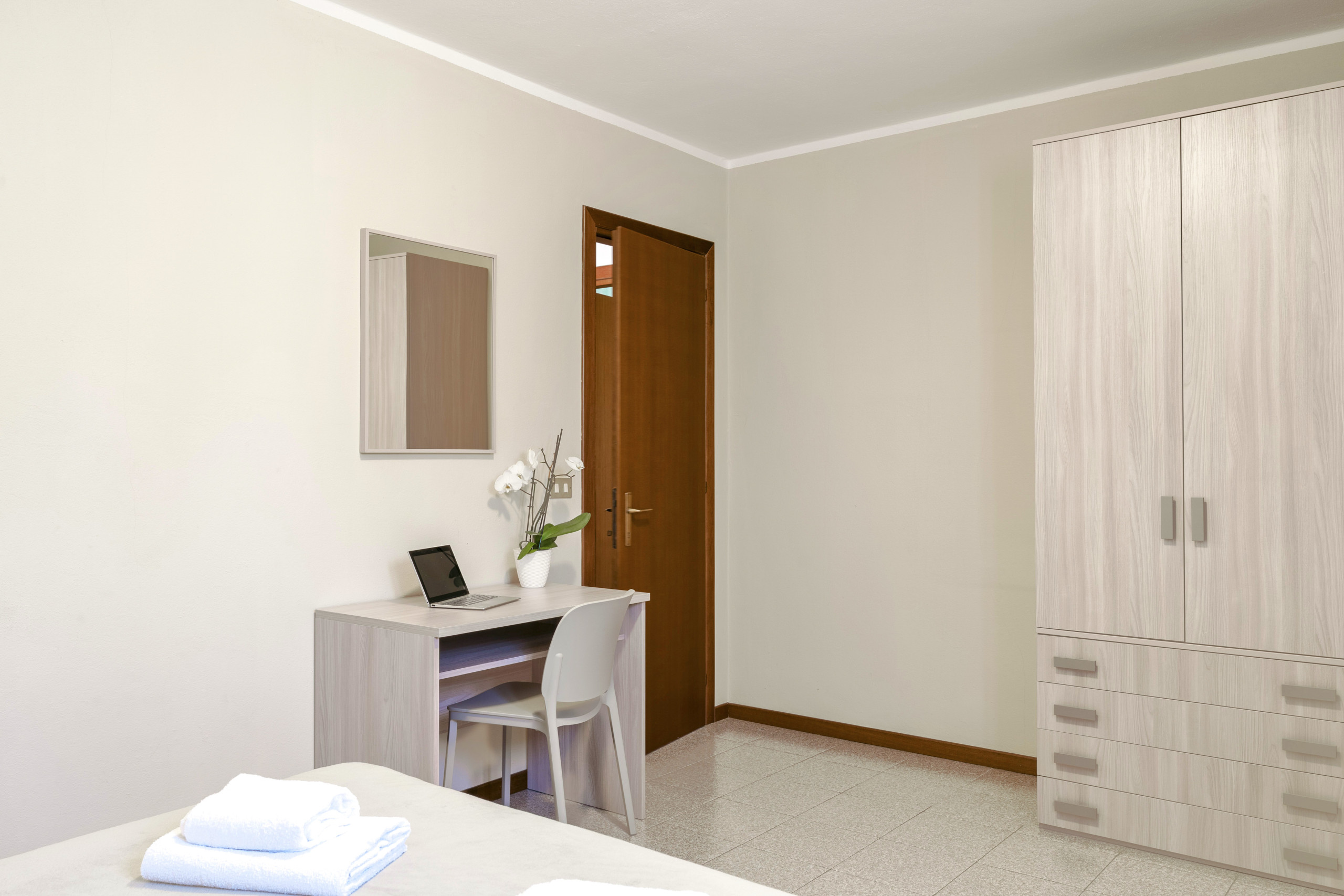 The Costa del Sole 2 three-room apartment is a bright apartment of approximately 65 sqm located in Pacengo di Lazise, within walking distance of Movieland and Caneva World and about 4 km from the historic centre of Lazise. It is situated in the Costa del Sole residential complex, with a communal swimming pool (guaranteed opening 15/05-30/09). The apartment is suitable for people with reduced mobility as it is completely on the ground floor and all rooms have manoeuvring spaces suitable for a wheelchair. The bathroom is fully accessible and designed to ensure comfort and safety. It is equipped with a wide sliding door to facilitate wheelchair access, floor-level shower with support handles. The washbasin is installed at an accessible height with free space underneath to allow wheelchair approach. The WC is equipped with a handrail on one side and a foldable grab bar on the other for easy and safe use. Non-slip surfaces and adequate lighting complete a functional and inclusive environment.