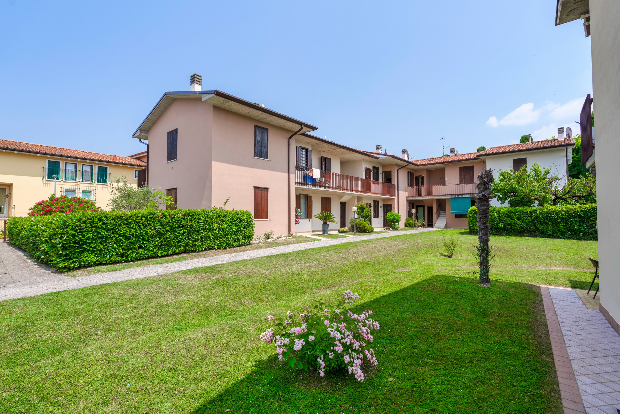 Charming two-room apartment located in the Gardenia residential complex in Lazise, about 1.2 km from the center of Lazise (15 minutes walking) and 1.5 km from the beach. The intimate residential context of only 8 units has a swimming pool (guaranteed opening period 15/05-30/09) and a large green area. The completely renovated apartment opens onto a welcoming living area with a view of the pool and a terrace furnished with a table, chairs, and a sun shade. The living room has a kitchenette with a refrigerator, freezer, oven, gas stove, dishwasher, toaster, American coffee machine, and capsule coffee machine. Relaxation corner with satellite TV, free WiFi, air conditioning, and a comfortable double sofa bed. Modern bathroom with shower cabin and hairdryer available for guests. Spacious storage room with changing area and pantry. The double bedroom, with direct access to the shaded rear garden furnished with an umbrella and sun loungers, has a spacious wardrobe and a canopy bed. Covered parking space in the garage. Cellar with laundry and two bicycles available for guests. Non-smoking apartment, pets not allowed. We recommend this apartment to couples or families looking for a modern accommodation in a small context convenient to the historic center of Lazise.