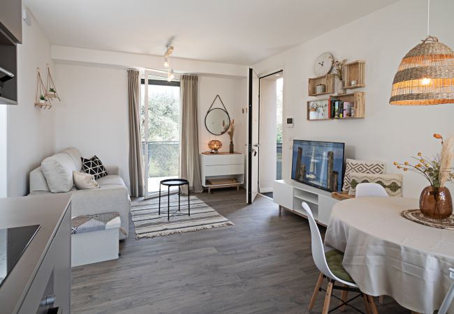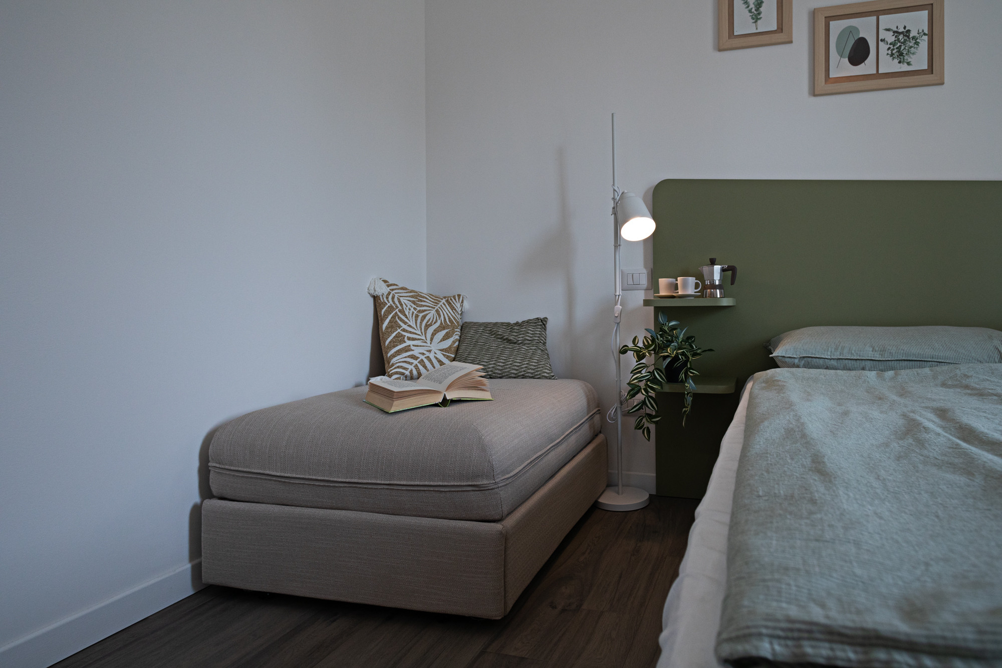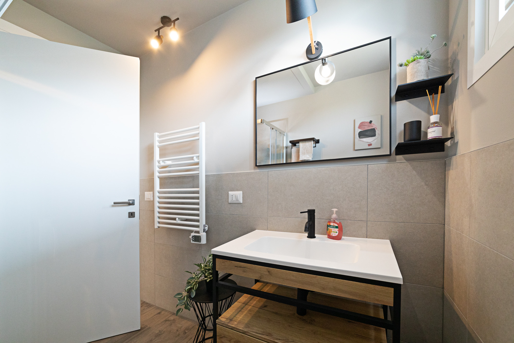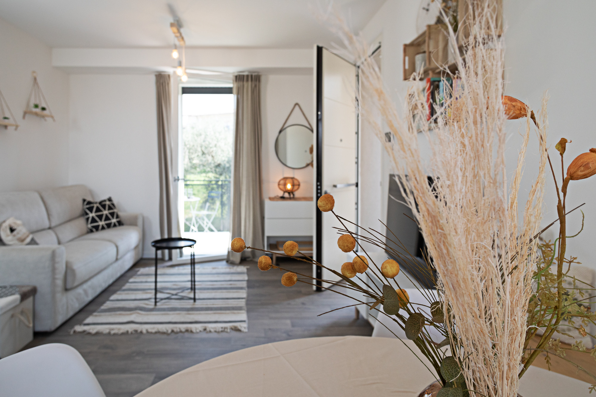 The Costa del Sole 2 three-room apartment is a bright apartment of approximately 65 sqm located in Pacengo di Lazise, within walking distance of Movieland and Caneva World and about 4 km from the historic centre of Lazise. It is situated in the Costa del Sole residential complex, with a communal swimming pool (guaranteed opening 15/05-30/09). The apartment is suitable for people with reduced mobility as it is completely on the ground floor and all rooms have manoeuvring spaces suitable for a wheelchair. The bathroom is fully accessible and designed to ensure comfort and safety. It is equipped with a wide sliding door to facilitate wheelchair access, floor-level shower with support handles. The washbasin is installed at an accessible height with free space underneath to allow wheelchair approach. The WC is equipped with a handrail on one side and a foldable grab bar on the other for easy and safe use. Non-slip surfaces and adequate lighting complete a functional and inclusive environment.