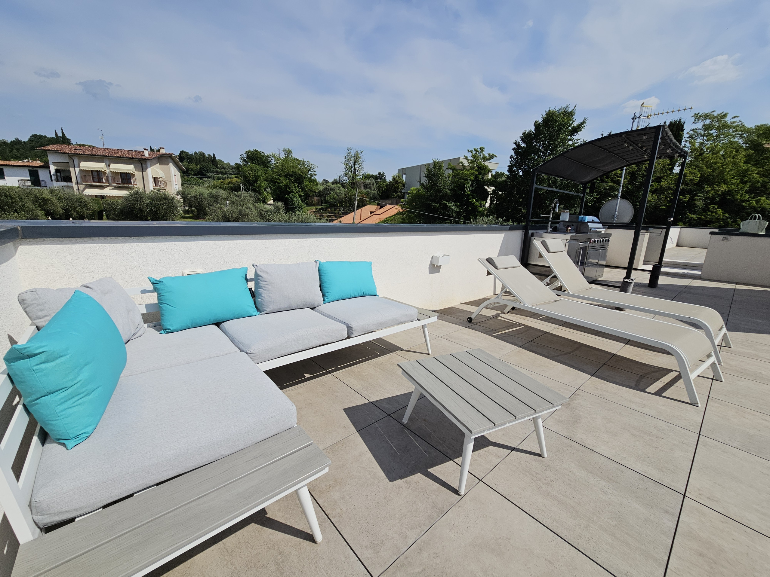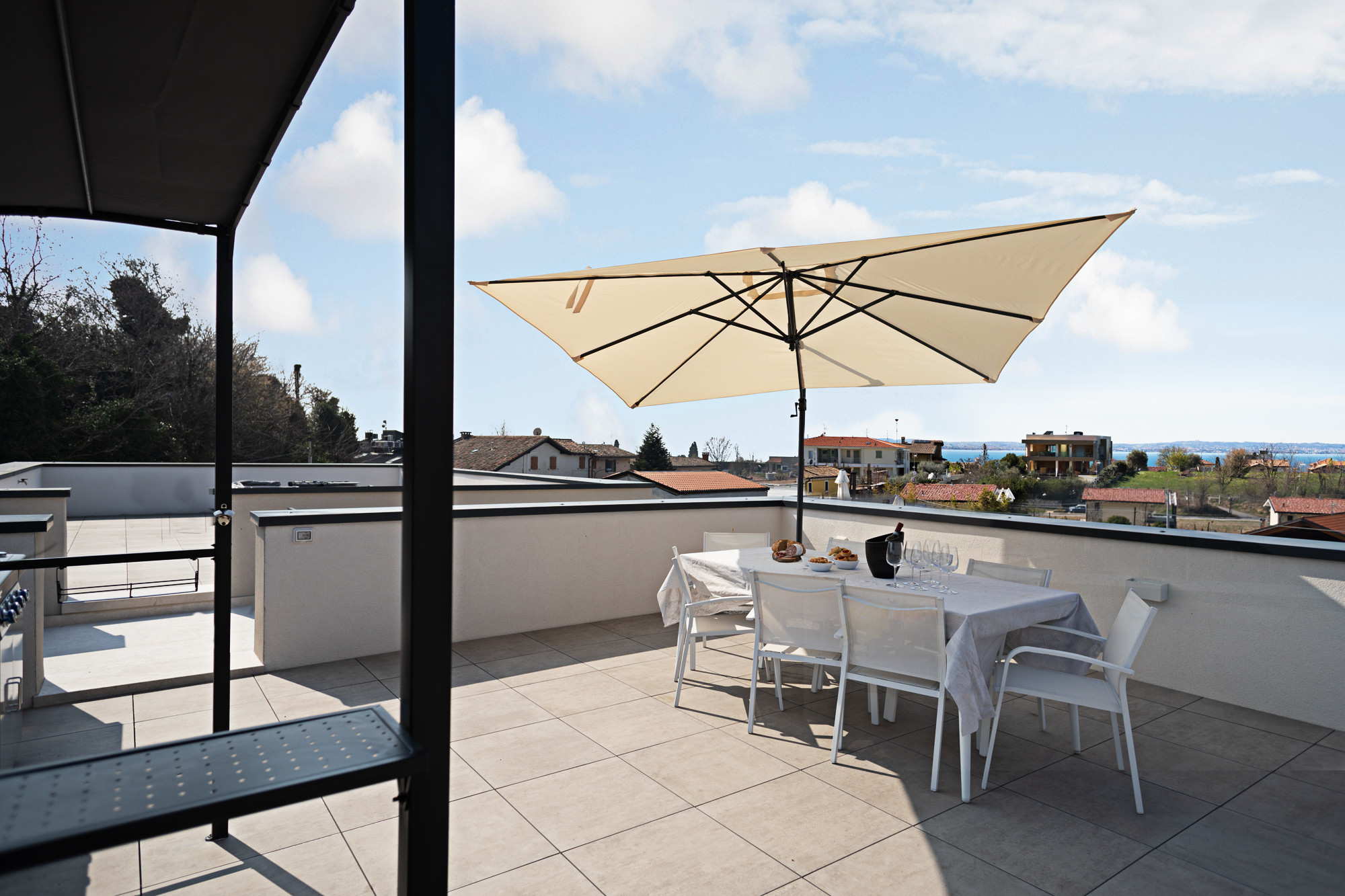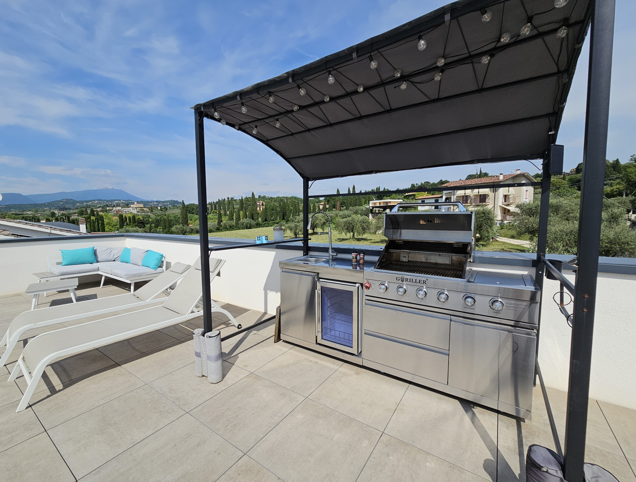 Bei der Schlüsseläbergabe wurden wir sehr freundlich empfangen und über die Lage sowie sonstige Themen zur Wohnung ausführlich informiert. 1. Die Wohnung ist absolut der Hammer. Ausstattung: 3x Balkon und eine wunderschöne Dachterasse (identisch mit den Bilder die im Internet gezeigt werden). 2x Schlafzimmer wovon einer mit Doppelbett und der andere mit Stockbett. 2x Badezimmer / Toiletten, wovon einer mit eine Regen-Dusche Ich habe mich in den Outdoor-Grill auf der Dachterasse verliebt :-). Leider war da der Kühlschrank nicht in Betrieb / Kein Strom drauf. Der Pool reicht völlig aus zum entspannen. Sonne oder Schatten ist hier vorhanden. Absolut ruhig gelegen. Die Wohnung ist komplett ausgestattet mit Klima-Anlage / Wify und etc. etc. Ebenfalls ist die Wohnung sehr sauber. Der dazugehörige Tiefgarage ist geräumig und per Funkfernbedienung zu öffnen. 2. Lage Die Wohnung liegt ca. 1,5 km vom Zentrum am Hang. Dadurch ist es möglich einwenig vom Gardasee zu sehen oder den schönen Sonnenuntergang. Ich möchte mich nochmals bei den Vermieter bedanken und auch die nette Damen vom Vermietungsbüro (Agenzia) für diese wunderschöne Wohnung. Natürlich ist diese Wohnung nicht günstig, aber ich denke, es ist für einen Kurzurlaub sein Geld wert. Grüße Fam. van Daalen |