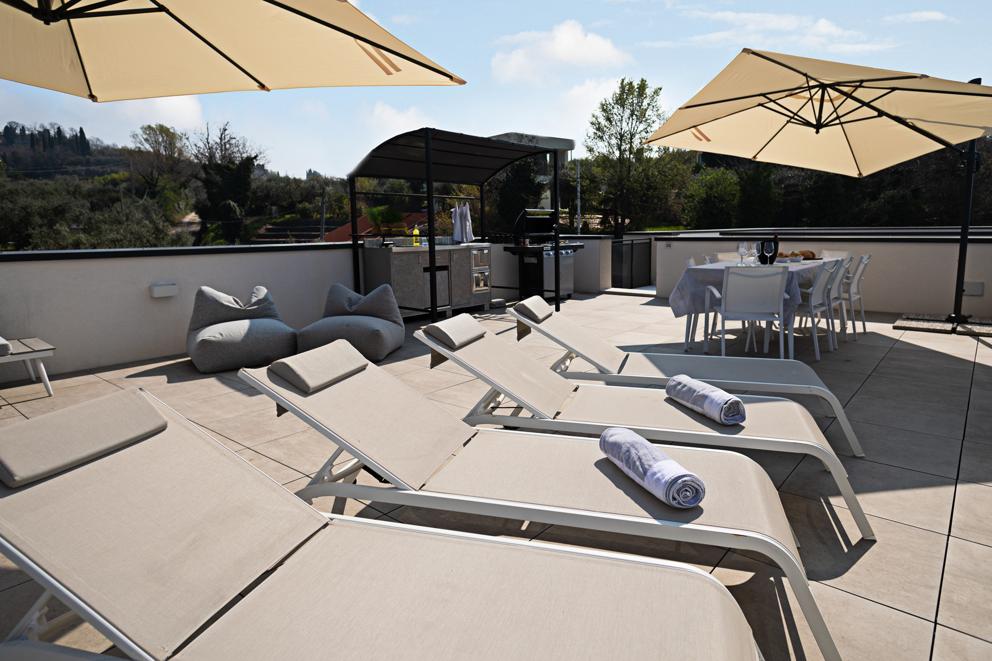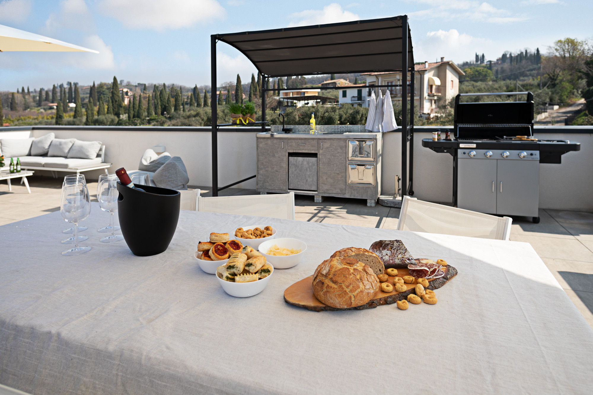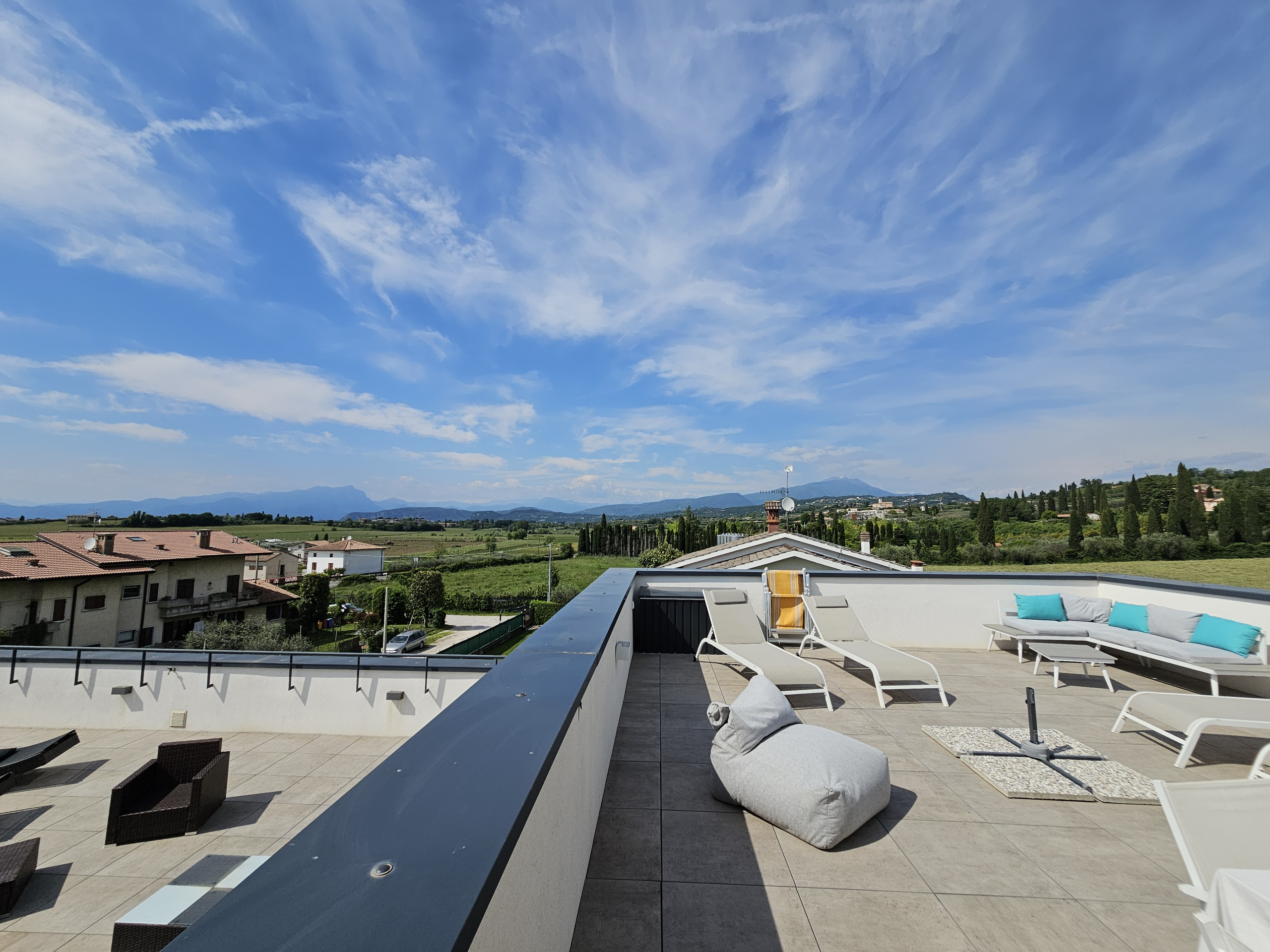 Bei der Schlüsseläbergabe wurden wir sehr freundlich empfangen und über die Lage sowie sonstige Themen zur Wohnung ausführlich informiert. 1. Die Wohnung ist absolut der Hammer. Ausstattung: 3x Balkon und eine wunderschöne Dachterasse (identisch mit den Bilder die im Internet gezeigt werden). 2x Schlafzimmer wovon einer mit Doppelbett und der andere mit Stockbett. 2x Badezimmer / Toiletten, wovon einer mit eine Regen-Dusche Ich habe mich in den Outdoor-Grill auf der Dachterasse verliebt :-). Leider war da der Kühlschrank nicht in Betrieb / Kein Strom drauf. Der Pool reicht völlig aus zum entspannen. Sonne oder Schatten ist hier vorhanden. Absolut ruhig gelegen. Die Wohnung ist komplett ausgestattet mit Klima-Anlage / Wify und etc. etc. Ebenfalls ist die Wohnung sehr sauber. Der dazugehörige Tiefgarage ist geräumig und per Funkfernbedienung zu öffnen. 2. Lage Die Wohnung liegt ca. 1,5 km vom Zentrum am Hang. Dadurch ist es möglich einwenig vom Gardasee zu sehen oder den schönen Sonnenuntergang. Ich möchte mich nochmals bei den Vermieter bedanken und auch die nette Damen vom Vermietungsbüro (Agenzia) für diese wunderschöne Wohnung. Natürlich ist diese Wohnung nicht günstig, aber ich denke, es ist für einen Kurzurlaub sein Geld wert. Grüße Fam. van Daalen |