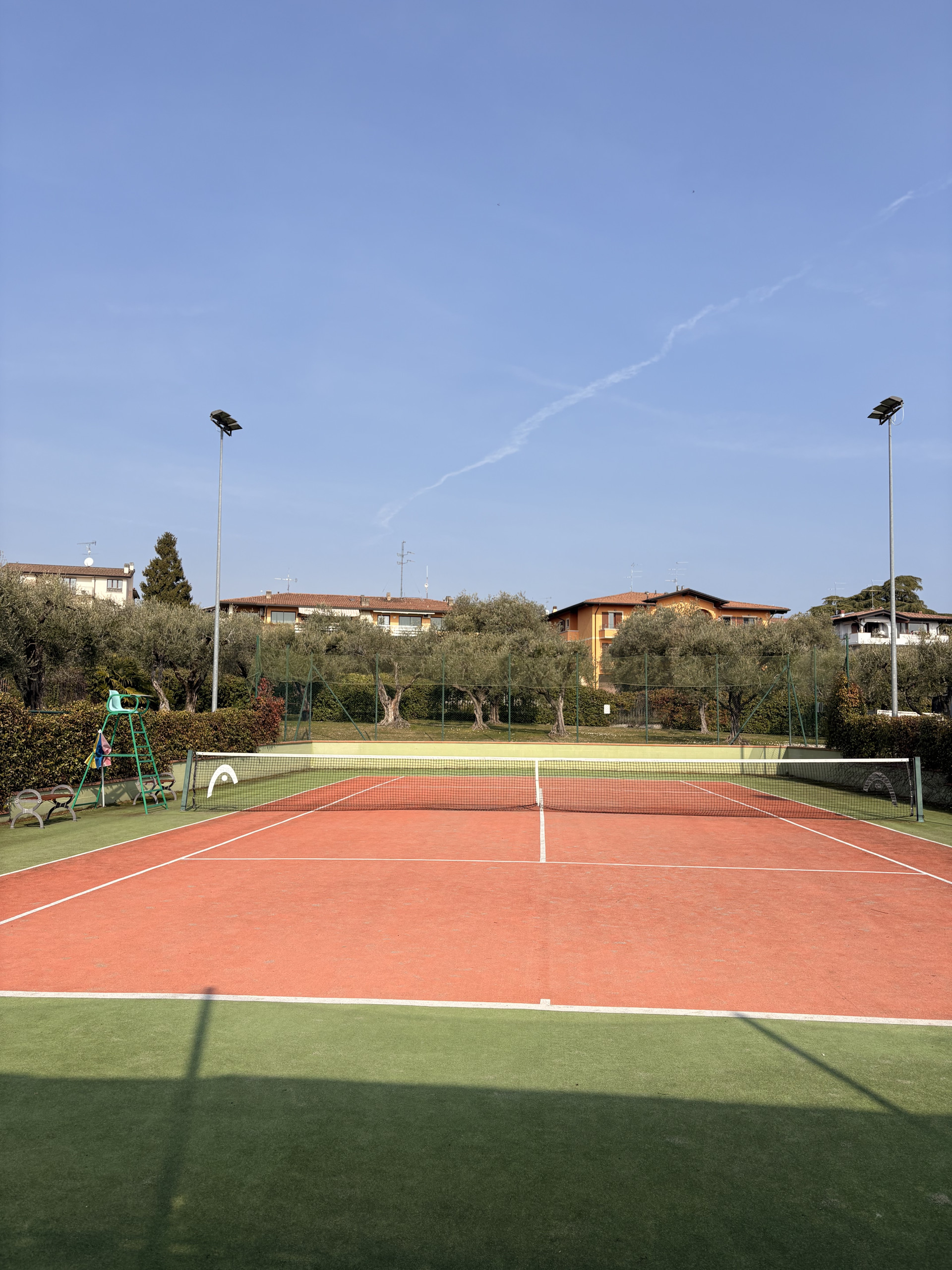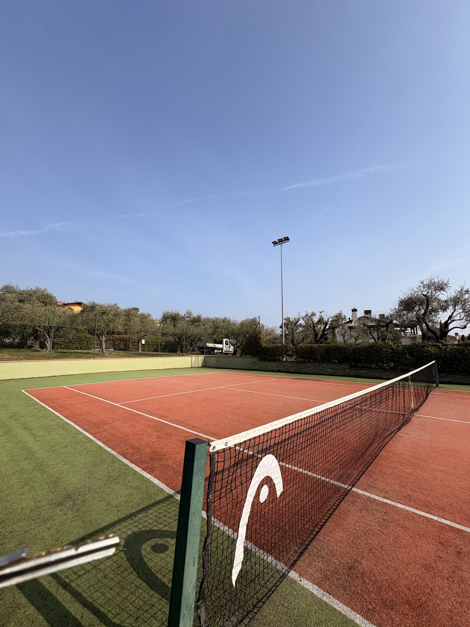 The residence has an outdoor tennis court that can be booked through an application.