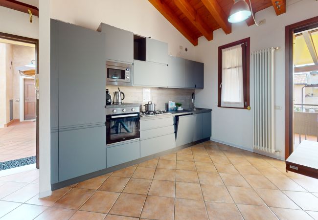 The apartment is perfect for families or couples who wish to experience an unforgettable stay on Lake Garda, offering a bright and comfortable atmosphere: the private equipped porch is perfect for outdoor lunches, moments of relaxation or simple chats with company, while the large condominium park, enriched by centuries-old olive trees, offers a unique atmosphere of tranquillity.