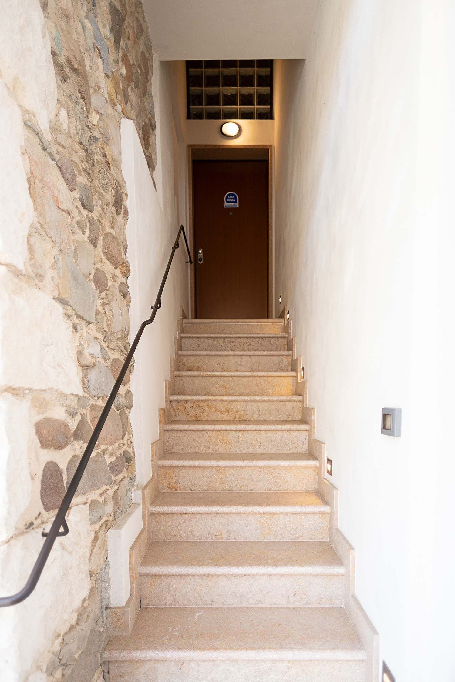 The Rustico Casa Rossa is divided into two apartments, which share the marble entrance stairs and a convenient entrance area, and can be rented together or separately. The rustic property has reserved parking spaces located approximately 90m from the house. The apartments do not have a garden or balconies.