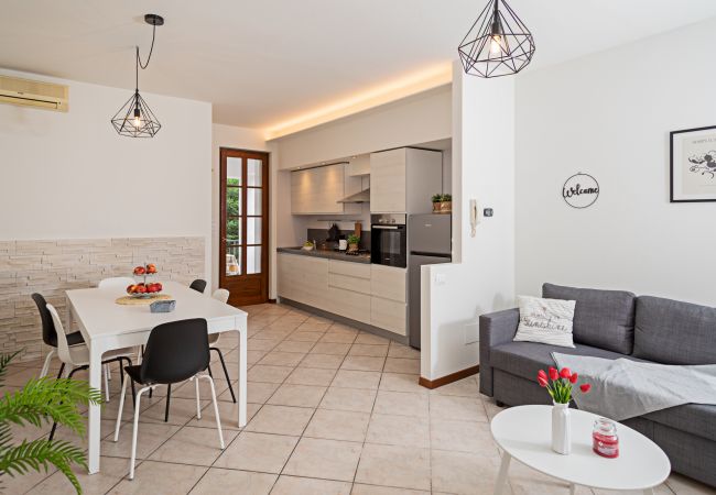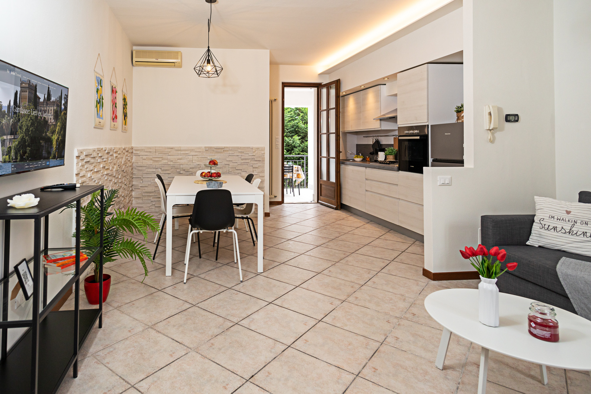 L'appartamento è spazioso,fornito di tutto l'occorrente,pulizia ottima,locali ampi e luminosi.Arredamento nuovo.Essendo inverno non abbiamo beneficiato della veranda posteriore e del terrazzo però danno comunque l'impressione,durante il periodo estivo, di essere spazi sfruttabili per poter beneficiare di un'area pranzo/cena esterna e di un'area barbecue. Direi,appartamento che ben suddivide la zona giorno da quella notte,ideale per famiglie. Posizione comoda per raggiungere tutte le località della sponda veronese del lago di Garda,Gardaland e tutti gli altri parchi divertimento della zona e la vicina Verona.