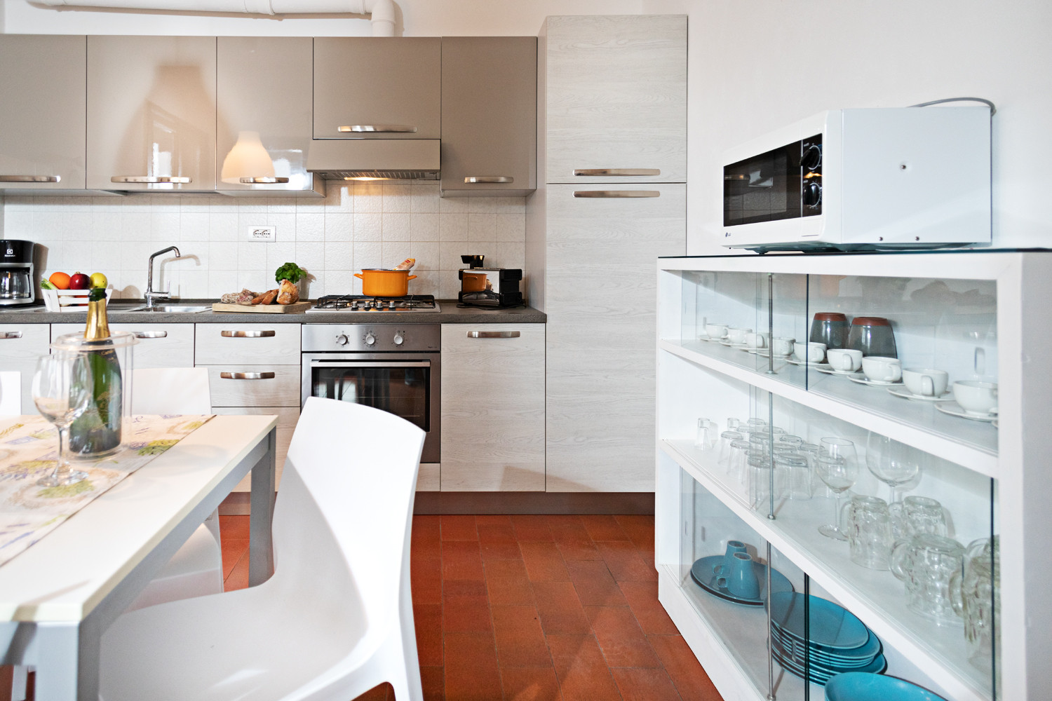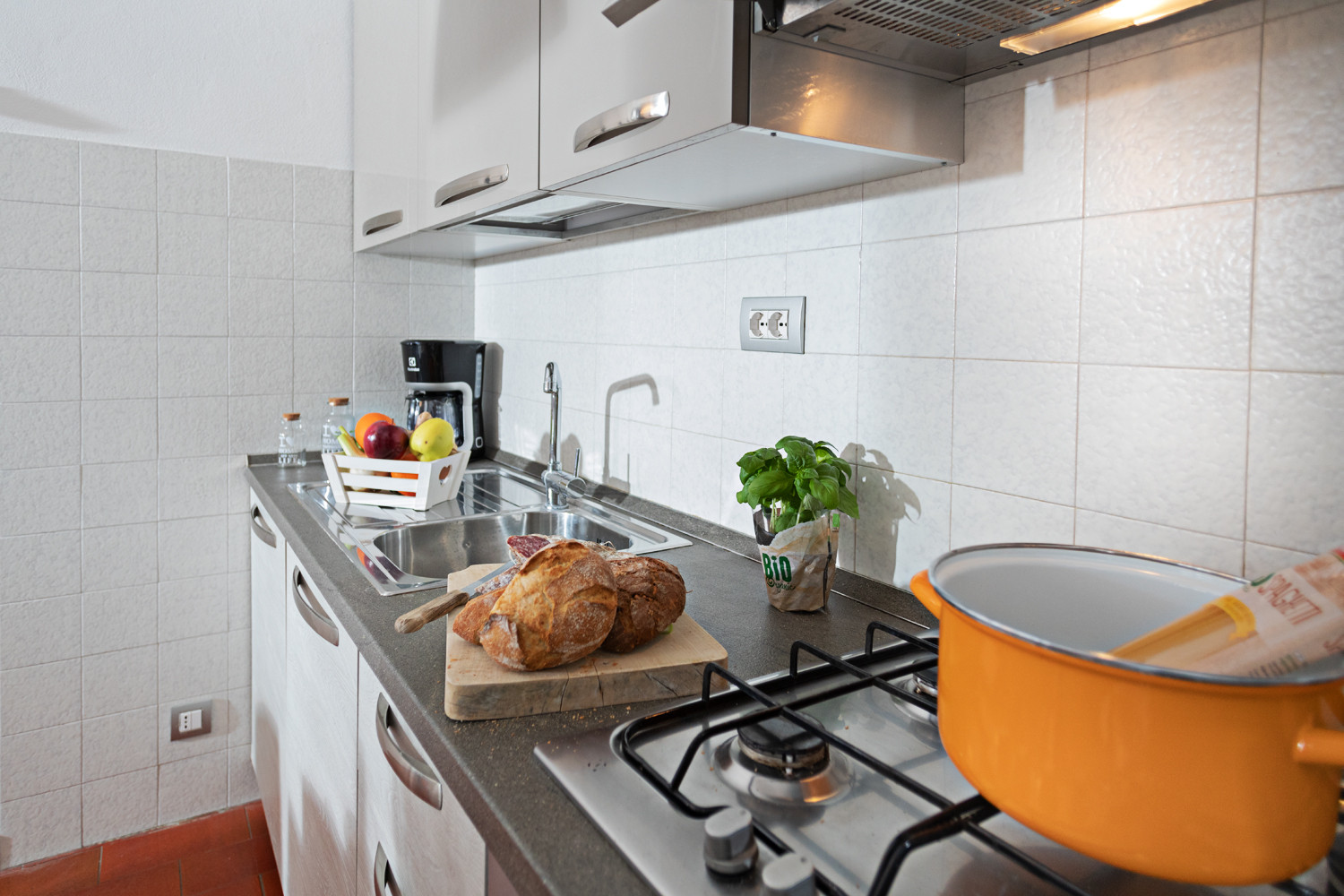 The 170 sqm villa is spread over two floors. The ground floor has a large living area with views of the pool and garden, with a majolica stove and TV (no satellite), separate equipped kitchen with refrigerator, gas hob, oven, dishwasher, toaster and coffee machine, pots and dishes. Luggage storage and shelter for electric bicycles available to guests. Service bathroom with shower and separate laundry room with washing machine.