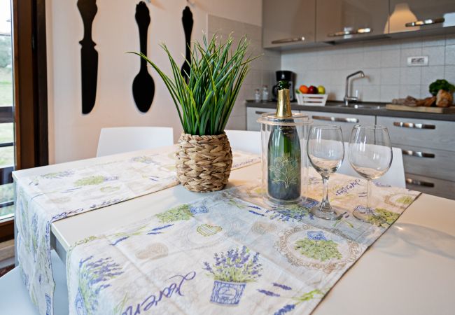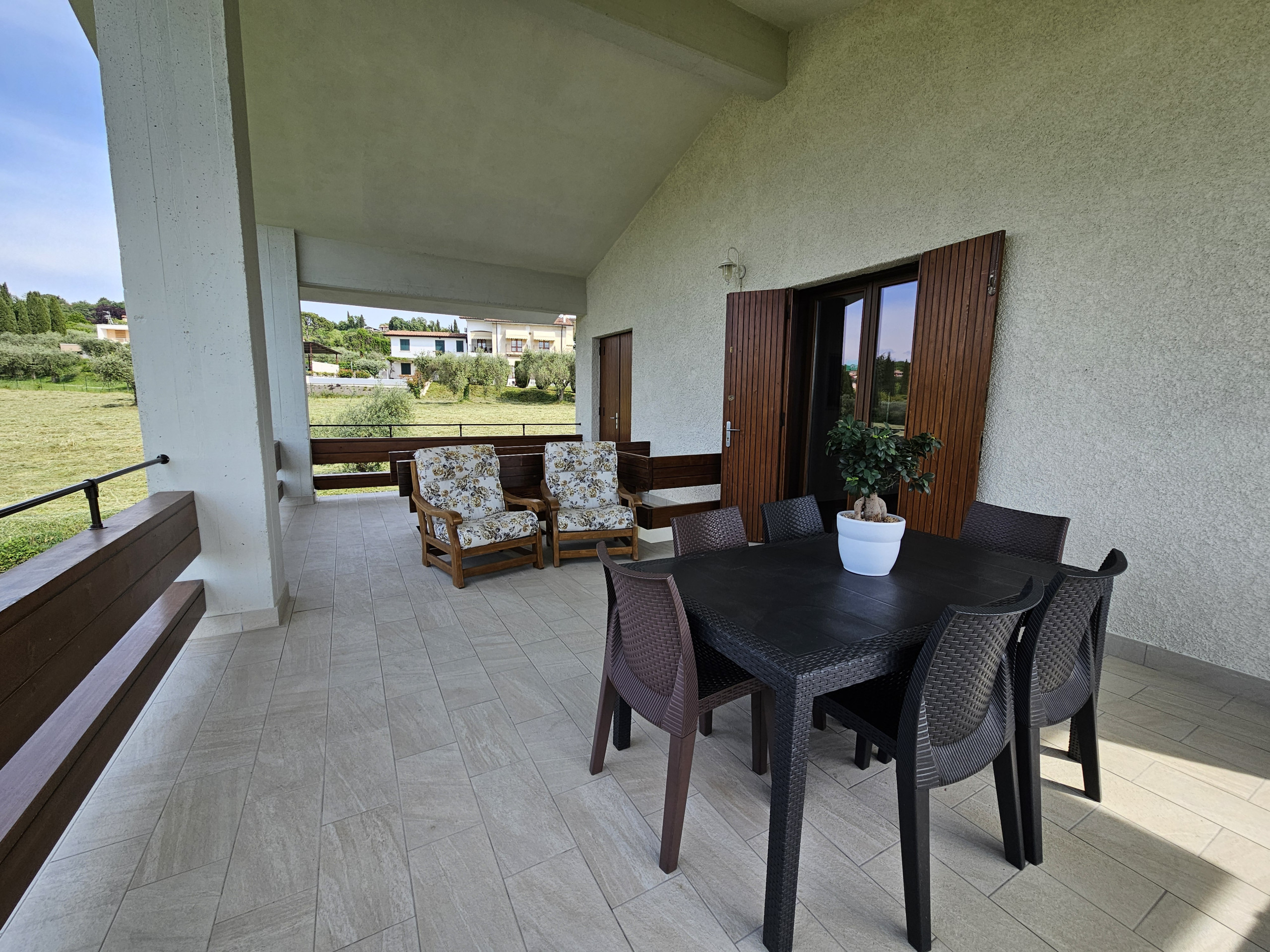 Villa Harmony is located in Colà di Lazise, a quiet hamlet immersed in greenery, of the well-known tourist resort on the shores of Lake Garda. The Garda Thermal Park is only 1 km away, the beach is about 2.7 km away and the centre of Lazise is about 5 km away. The 120 sq m villa has recently been renovated and can comfortably accommodate up to 8 people. It is located on the raised ground floor and has 2 large and bright double bedrooms, 1 room with two single beds that can be pushed together, 2 full bathrooms with showers, a washing machine; air conditioning and wifi are available for guests. The house also has a fourth room with a sofa bed and TV that can accommodate one adult or two children. The bright living area opens onto a furnished balcony with a table and chairs. The kitchen is fully equipped with crockery, fridge, freezer, gas hob, oven and dishwasher.
